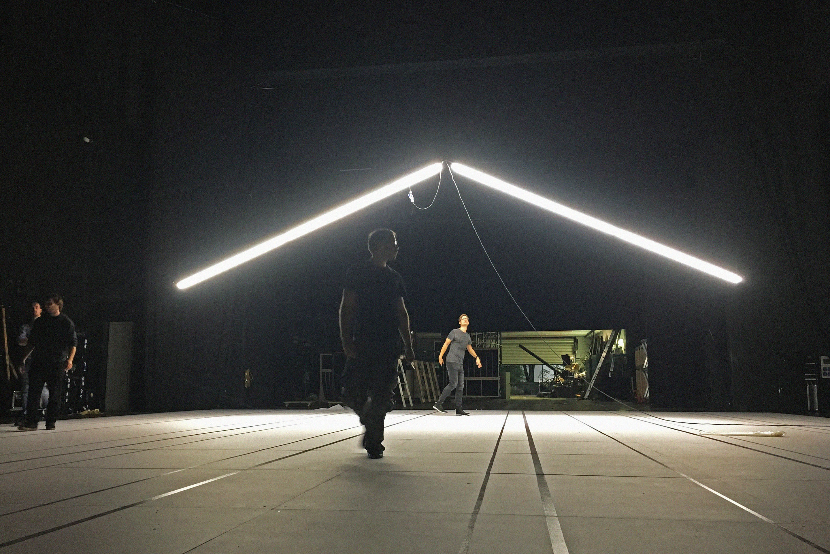 The fairytale nature and variegation of the original story dictate numerous set changes and transitions. We changed the libretto’s figurative and illustrative elements with basic abstracted set elements such as the floor, scenery with openings, a triangular sculpture, curtains, light line and geometrical projections. In order to retain the epic dimension of the staging, we combined the set elements, costumes and lighting design, thus creating a series of aestheticised stage compositions that framed or backed the sound images of this exceptional musical masterpiece. With our creative team, we thus developed a minimalist, geometrical graphic language of clear colours and powerful light atmospheres.